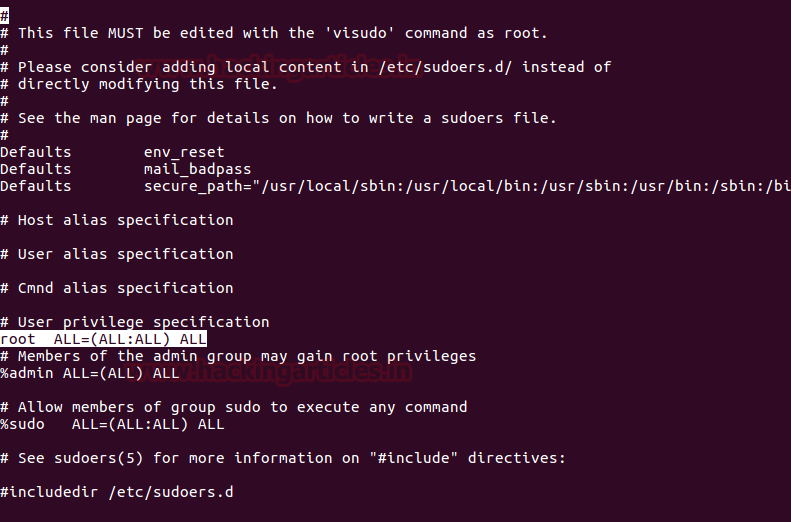 Sometimes admin assigns delicate authorities to a particular user to run binary programs which allow a user to edit any system files such as /etc/passwd and so on. There are certain binary programs which can lead to privilege escalation if authorized to a user. In given below command we have assign sudo rights to the following program which can be run as root user.