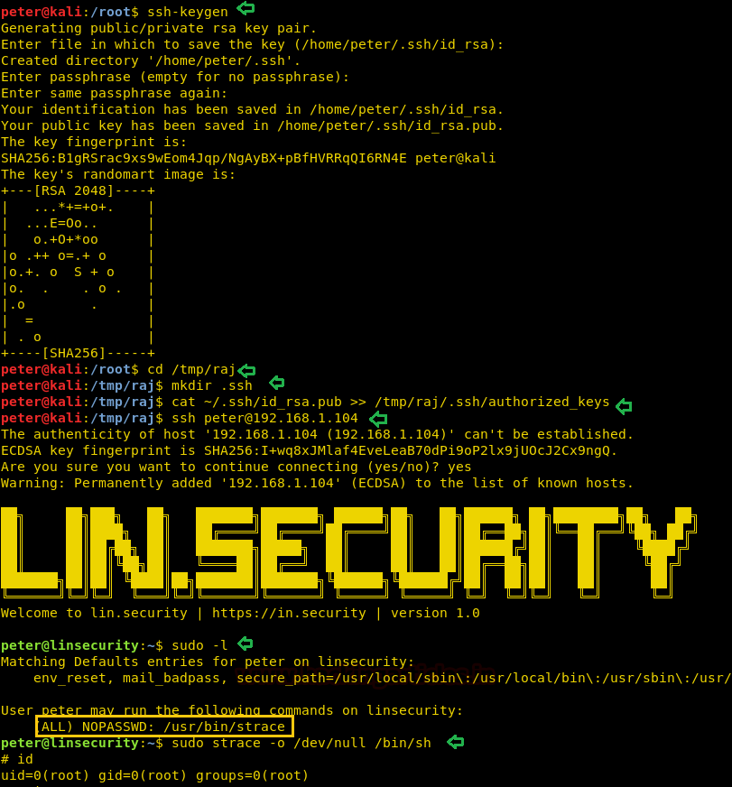 So, here peter can run strace commands with sudo which means we can spawn the interactive system shell and can get away from low-privilege environments. It goes in a privileged environment with elevated privileges to access the file system or elevate root shell if sudo permission is enabled