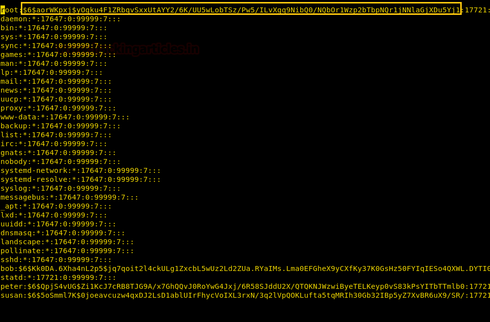 So, as you can observe that now we are having modified passwd file where user insecurity has an entry with UID: GID 0:0 and no password.