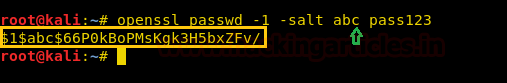 | 1 | openssl passwd -1 -salt abc pass123 |