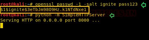 | 1 | openssl passwd -1 -salt ignite pass123 |