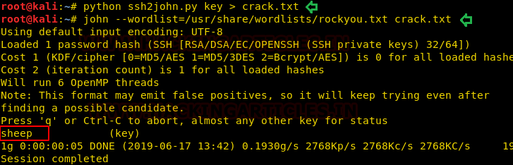 Then we have used ssh2john to convert this SSH key into a crackable file for John the ripper and further used the rockyou.txt wordlist for johntheripper.