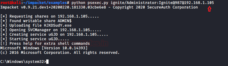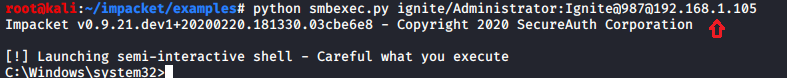 | 1 | python psexec.py ignite/administrator:Ignite@987@192.168.1.105 |