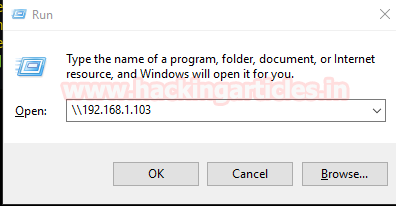 Now again victim will try to access share folder, therefore, he will try of connecting with him (attacker) through his network IP, given below image is a proof to display that victim is connecting attacker’s IP: 192.168.1.103.