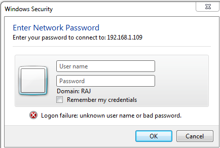 Now when the victim will try to access our share folder, therefore, he will try of connecting with us through his network IP, given below image is a proof to demonstrate that victim is connecting malicious IP: 192.168.1.109. When the victim will try to access the shared folder, he will get trap into fake window security alert prompt, which will ask victims to enter his username and password for accessing shared folders.