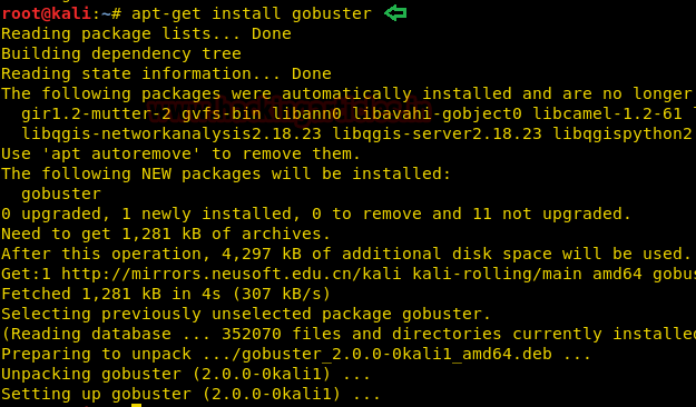| 1 | apt-get install gobuster |
