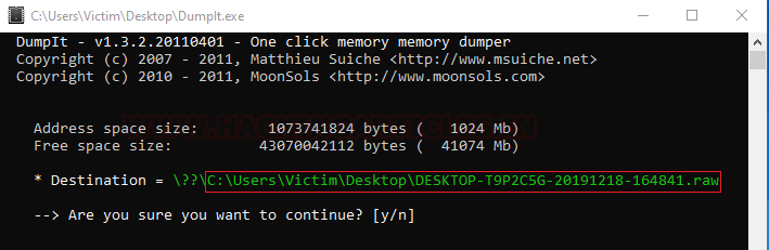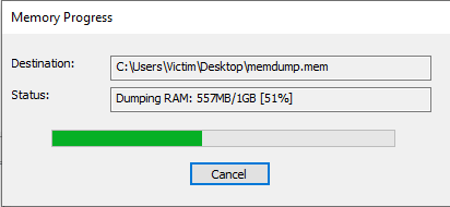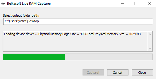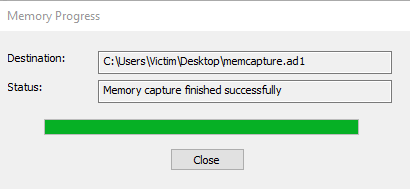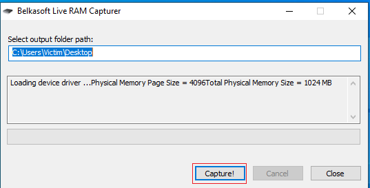 Sau khi cung cấp các thông tin chi tiết ở trên, bây giờ quá trình chụp ảnh bộ nhớ được bắt đầu, và phụ thuộc vào dung lượng bộ nhớ cần bao nhiêu thời gian để hoàn thành quá trình.