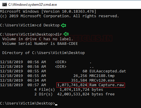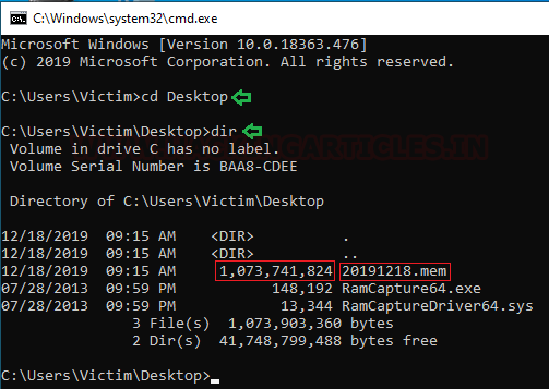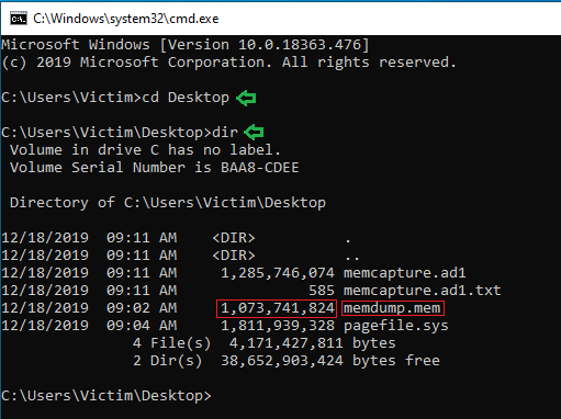 Bây giờ chúng ta có thể kiểm tra đường dẫn đã định vị của chúng ta xem ảnh bộ nhớ của chúng ta có được tạo hay không như chúng ta có thể thấy trong hình trên rằng ảnh của chúng ta đã được tạo thành công để có thể phân tích ảnh bộ nhớ đó.