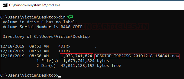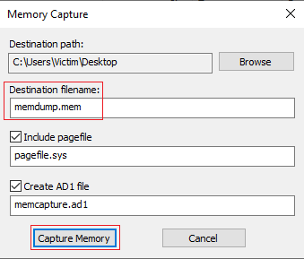 Như chúng ta thấy trong hình trên, các bạn phải cung cấp tên của ảnh bộ nhớ và định dạng mà chúng ta muốn chụp ảnh bộ nhớ.
