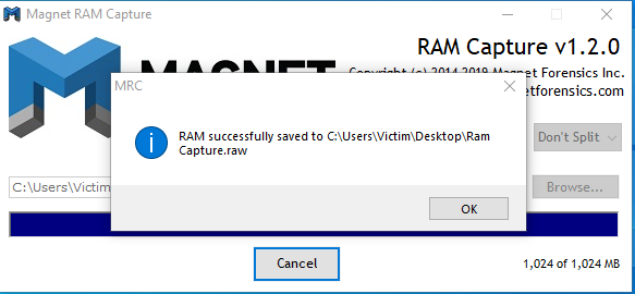 Magnet Ram capture có dung lượng bộ nhớ nhỏ, có nghĩa là người điều tra có thể chạy công cụ trong khi dữ liệu được ghi đè trong bộ nhớ. Chúng ta có thể chụp dữ liệu bộ nhớ ở định dạng Raw (.DMP / .RAW / .BIN) và dễ dàng phân tích chúng.