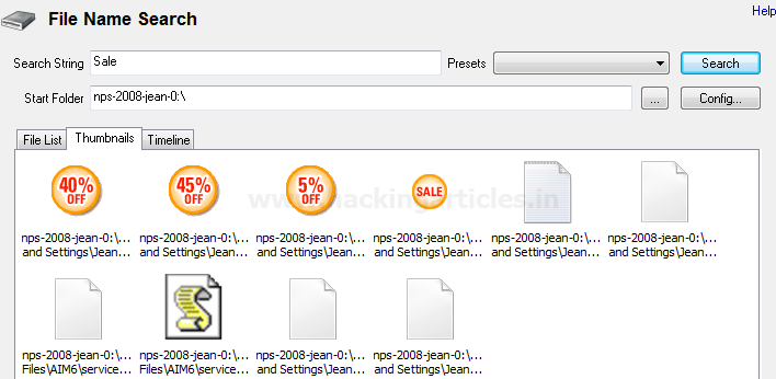 Nhấp vào OK và trong cửa sổ tìm kiếm tệp, nhập tên tệp và nhấp vào tìm kiếm, Tùy thuộc vào khối lượng dữ liệu Việc tìm kiếm sẽ mất một chút thời gian và sẽ hiển thị kết quả. Trong tìm kiếm của chúng tôi, chúng tôi đã tìm kiếm cụm từ “Sale” và điều này sẽ hiển thị tất cả các tệp có cụm từ tìm kiếm như hình sau.
