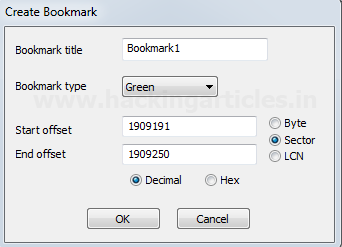 Nhấp vào nút đánh dấu trên màn hình chính của Raw Disk Viewer. chúng tôi có thể tạo các dấu trang cho các bằng chứng liên quan.