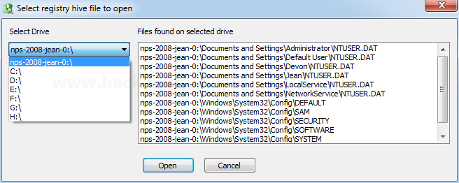 Để bắt đầu với việc mở trình xem sổ đăng ký, chúng tôi có thể chọn ổ đĩa / bằng chứng mà chúng tôi muốn làm việc. Tất cả các tệp đăng ký trong ổ đĩa / bằng chứng cụ thể đó sẽ được liệt kê ở phía bên phải.