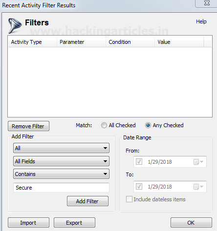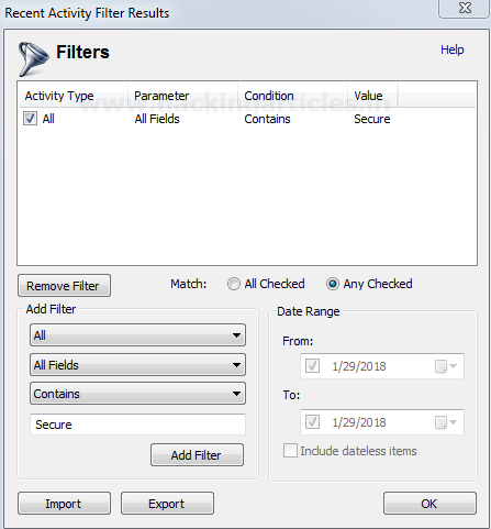Chọn / Bỏ chọn các tùy chọn theo yêu cầu hoặc nếu được yêu cầu, hãy thay đổi ngày / phạm vi ngày cho một hoạt động dựa trên thời gian cụ thể và nhấp vào OK.