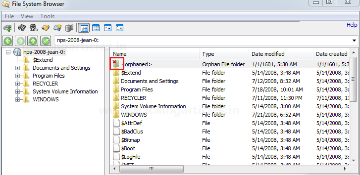 Các tệp / thư mục đã xóa (nếu có) cũng sẽ được liệt kê và sẽ được đánh dấu bằng dấu thập đỏ.