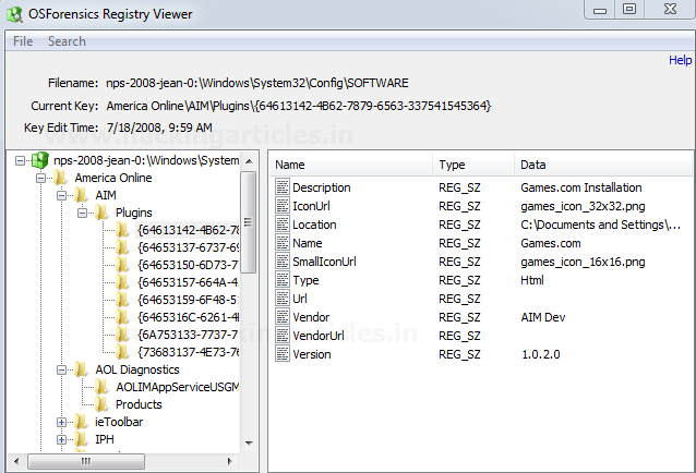 Nhấp đúp vào bất kỳ tệp nào và chúng tôi có thể điều hướng đến sổ đăng ký và có thể nhận được tất cả các chi tiết.