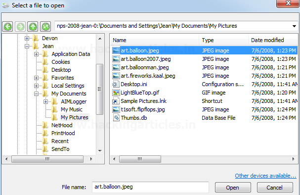 Chọn tệp hình ảnh và duyệt tìm tệp Bằng chứng và nhấp vào mở.
