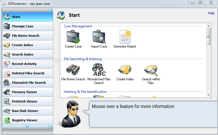 Ở phía bên trái là các tùy chọn / khả năng chính của pháp y số mà chúng ta sẽ đề cập chi tiết.
