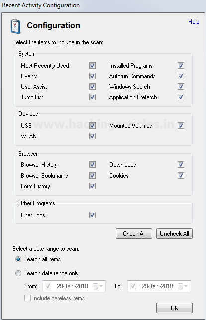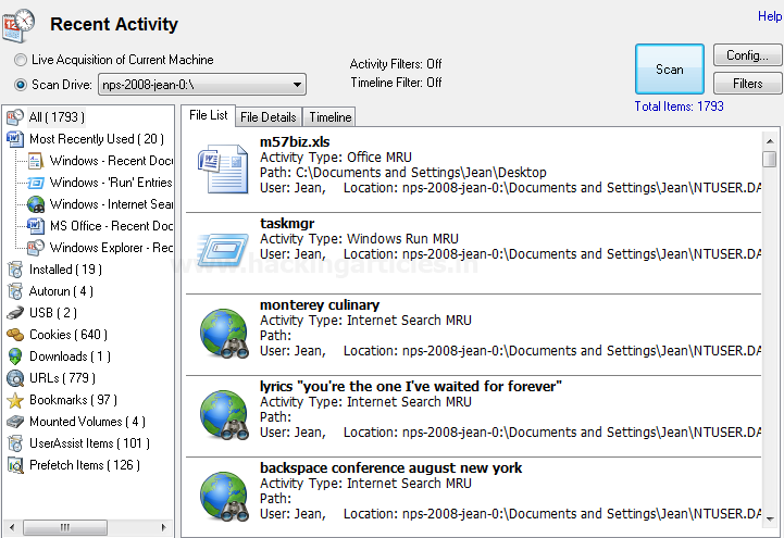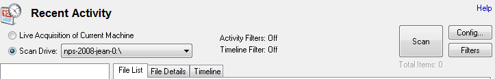 Chúng tôi có tùy chọn để nắm bắt các Hoạt động gần đây hay Recent Activity thông qua việc thu thập trực tiếp các máy hiện tại hoặc bằng cách quét ổ đĩa / bằng chứng.