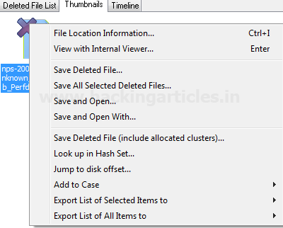 Nhấp chuột phải vào tệp để nhận tất cả các tùy chọn có sẵn của tệp / offset / cluster.