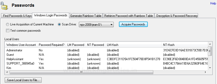 Chọn Mật khẩu đăng nhập Windows, chọn Drive / bằng chứng và nhấp vào Lấy mật khẩu
