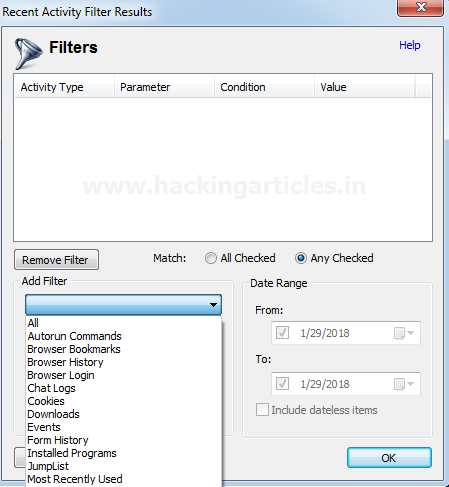 Tính năng Hoạt động gần đây cho phép điều tra viên quét bằng chứng về hoạt động gần đây, chẳng hạn như các trang web đã truy cập, ổ USB, mạng không dây, tải xuống gần đây và nhiều hơn nữa.