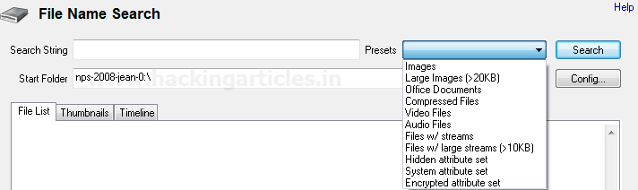 Ngoài ra, các bạn có thể lọc / tinh chỉnh tìm kiếm tệp bằng cách thay đổi cài đặt cấu hình, để làm như vậy, hãy nhấp vào nút cấu hình (Config…) và thay đổi cài đặt theo yêu cầu.