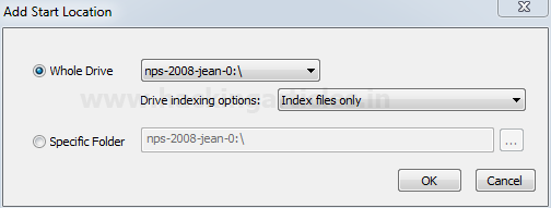 Tùy chỉnh mẫu và nhấp vào OK. Nhấp vào tiếp theo và chuyển sang Bước 2. Tại đây các bạn cần chọn ổ đĩa hoặc thư mục muốn lập chỉ mục và chọn tùy chọn lập chỉ mục từ trình đơn thả xuống như hình dưới đây và nhấp vào OK.