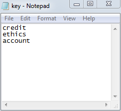 Chúng tôi đã tạo một tệp văn bản có tên key.txt với ba từ khóa và lưu nó trên máy tính.