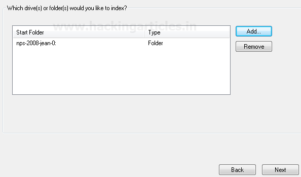 Hình ảnh, ổ đĩa hoặc thư mục được chọn sẽ được liệt kê, (chúng ta có thể thêm nhiều ổ đĩa / thư mục) để lập chỉ mục.