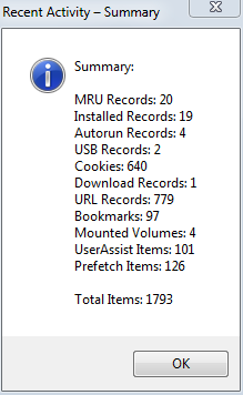 Khi quá trình quét hoàn tất, các bạn sẽ nhận được một cửa sổ bật lên với bản tóm tắt bằng chứng đã quét.