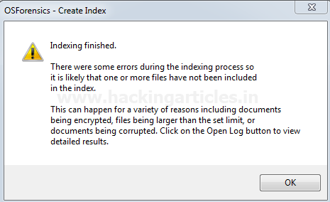 Sau khi lập chỉ mục hoàn tất, chúng ta sẽ nhận được một cửa sổ bật lên với thông báo đã hoàn thành lập chỉ mục.