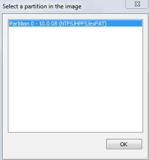 Tất cả các phân vùng trong hình ảnh có được sẽ được liệt kê. Chọn phân vùng và nhấp vào OK.