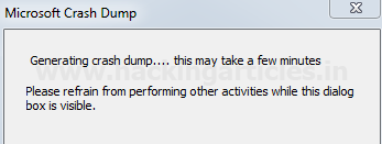 Các bạn cũng có thể lưu một kết xuất sự cố, chỉ cần duyệt đến một thư mục và lưu tệp. Phần mở rộng của tệp kết xuất sự cố là .dmp. Trong hình ảnh dưới đây, chúng ta đang lưu tệp kết xuất sự cố với tên CrashDump.dmp. Các bạn sẽ nhận được thông báo sau khi quá trình kết xuất đang diễn ra