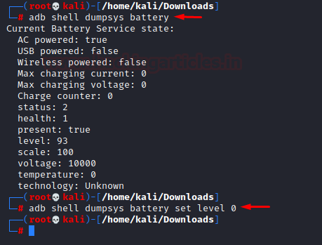 | 1 | adb shell dumpsys battery |