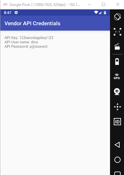 Điều này sẽ mở ra hoạt động APICredsActivity như thế này: