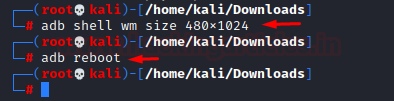 | 12 | adb shell wm size 480x1024adb reboot |