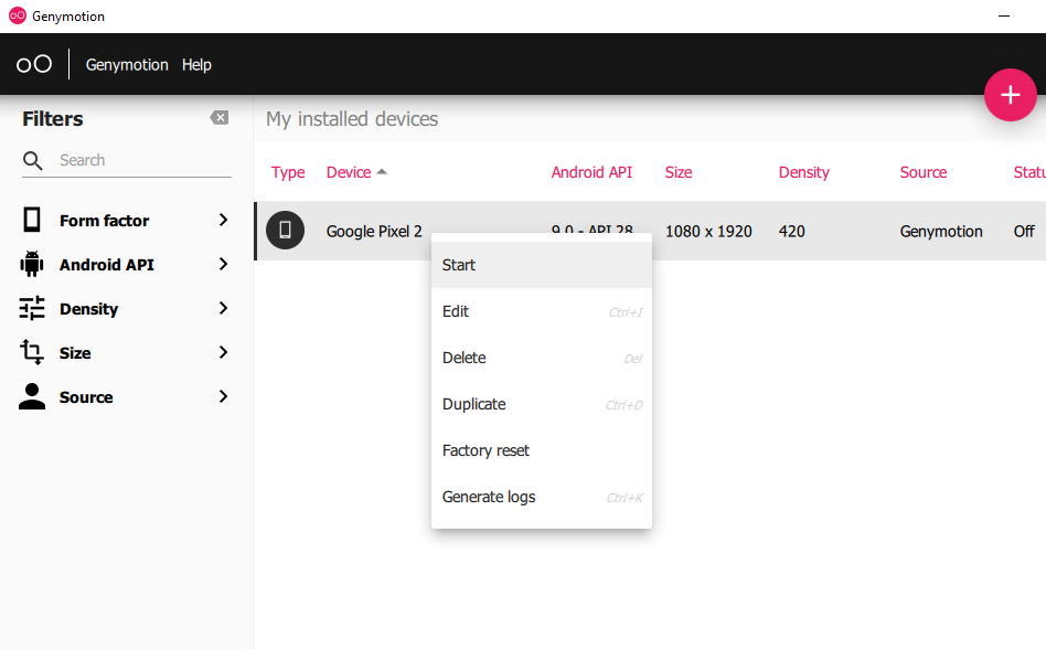 Sau khi nhấp vào nút cài đặt, API tương ứng trước tiên sẽ được tải xuống nếu chưa có sẵn trong SDK và sau đó máy sẽ sẵn sàng khởi chạy như sau. Nhấp chuột phải vào nó và nhấn bắt đầu
