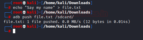 | 1 2 | echo “Say my name” > file.txt adb push file.txt /sdcard/ |