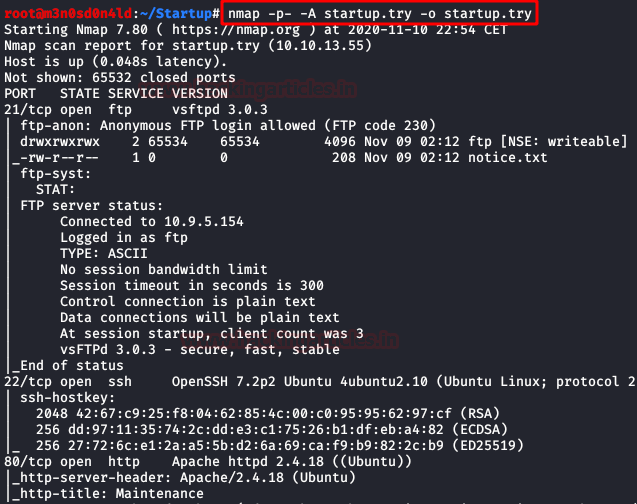 Nmap cho chúng tôi biết rằng có thể truy cập FTP là người dùng ” ẩn danh “, chúng tôi nhập và tải xuống tệp.