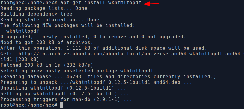 Bạn có thể nhận thấy một số lỗi trong khi tạo báo cáo. Để giải quyết vấn đề này, bạn có thể làm theo lệnh dưới đây và cài đặt mô-đun wkhtmltopdf :