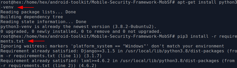 Để cài đặt MobSF, hãy tạo một thư mục và làm theo các lệnh: