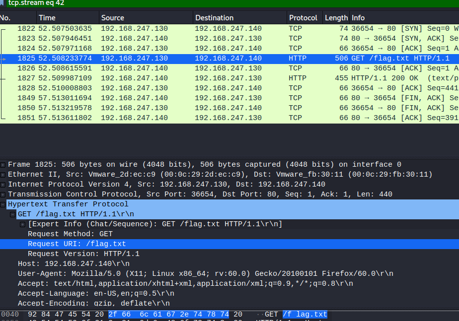Và như tên tác vụ gợi ý chúng ta phải đọc bất kỳ gói nào trong bất kỳ gói nào, vì vậy sau khi áp dụng nhiều bộ lọc và tìm kiếm, chúng ta có thể nhận được yêu cầu mà flag.txt đã được gửi, vì vậy chúng ta chỉ cần mở tệp đó với sự trợ giúp của suối.