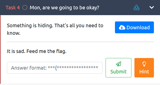 Nhiệm vụ này dựa trên mật mã bởi vì trong mô tả nhiệm vụ, họ chỉ ra rằng “có thứ gì đó đang ẩn náu” ở nơi chúng đã biến mất, hơn nữa có một tệp để tải xuống. Hãy tải tệp …
