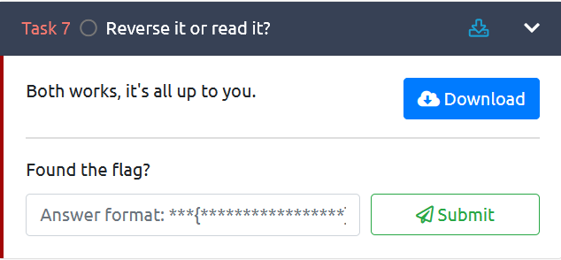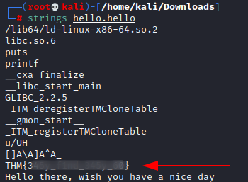 Trong tác vụ này, chúng ta chỉ nên biết về lệnh mở tệp elf (một loại .exe) , một tập thực thi trên linux ?. Ngay sau khi chúng tôi mở tệp bằng lệnh sau, chúng tôi đã nhận được cờ được liệt kê với string, hãy lưu ý string trong bộ tool của các bạn