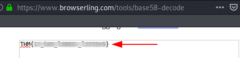 Ở đây, như đã nói, nó là một nhiệm vụ giải mã giống như hầu hết các thử thách về mật mã. Và chúng tôi cũng được dẫn đến thuật toán base58 như manh mối, vì vậy chúng tôi sử dụng trực tiếp bộ giải mã base58 trực tuyến.
