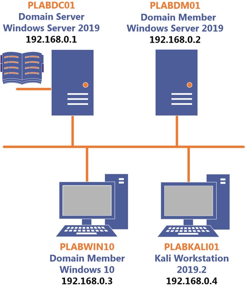 Để thực hành bài này các bạn cần dựng PLAB Domain với AD và các máy thành viên mô phỏng hệ thống Security365 Practice Lab với máy chủ quản trị miền là Domain Controller PLABDC01, máy chủ thành viên miền là PLABDM01 cùng với 1 thành viên là Windows 10. DOmain name là ignite.local thay bằng PRACTICELAB.COM