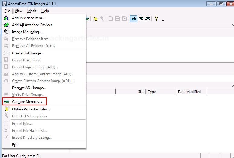 Chúng tôi sẽ sử dụng FTK Imager để ghi lại bộ nhớ cùng với pagefile.sys.